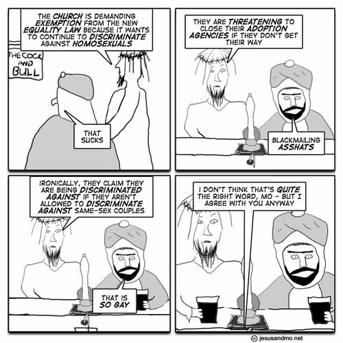 Indeed the Bible is full of anti-homosexual laws, claiming that homosexuals are in the same class as thieves and murderers (1 Corinthians 6:9-11, 1 Timothy 1:8-11, Leviticus 18:22, 20:13).